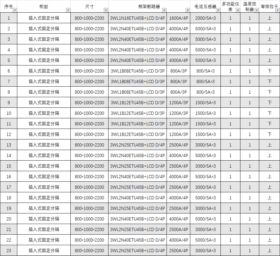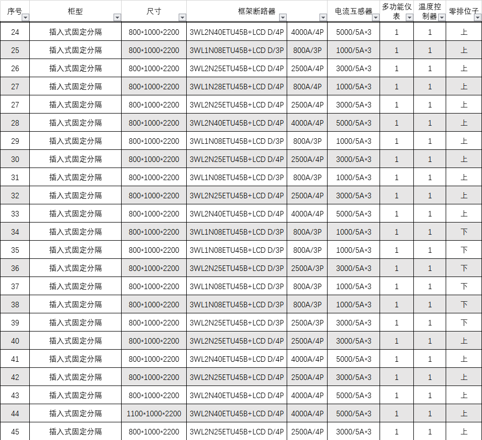 商品描述:插入式固定分隔低壓出線柜,框架斷路器 3WL2N40ETU45B+LCD D/4P