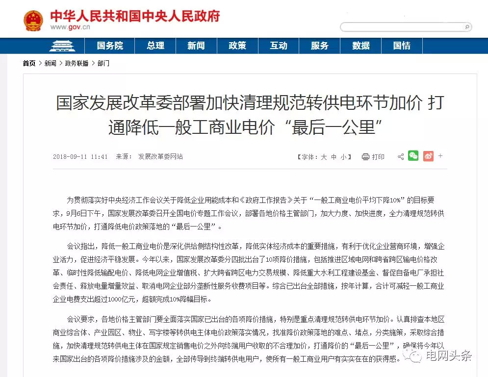 2018年4月起,國家發(fā)改委先后發(fā)布了4份降電價文件,特別強調(diào):要將降價的紅利傳導到終端客戶,加快清理規(guī)范轉(zhuǎn)供電主體在國家規(guī)定銷售電價之外向終端客戶收取的不合理加價,打通降價的“最后一公里”。