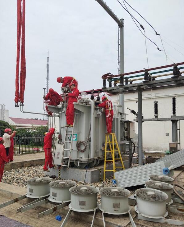 7、110kV變壓器大修吊芯作業(yè),開(kāi)始吊卸散熱片,散熱風(fēng)扇,油枕等附件