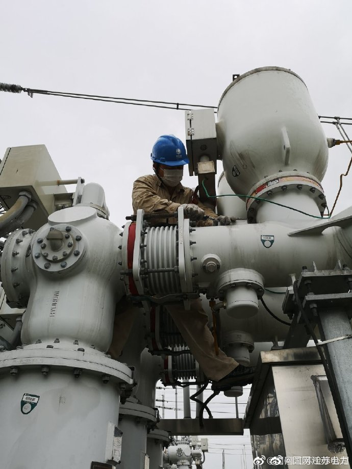 6月5日,在500千伏吳江變電站現(xiàn)場,國網(wǎng)江蘇檢修公司蘇州運維站變電修試二班班員正在開展220千伏GIS罐體連接發(fā)熱隱患消除工作。一絲不茍地處理發(fā)熱點,確保設備恢復正常。