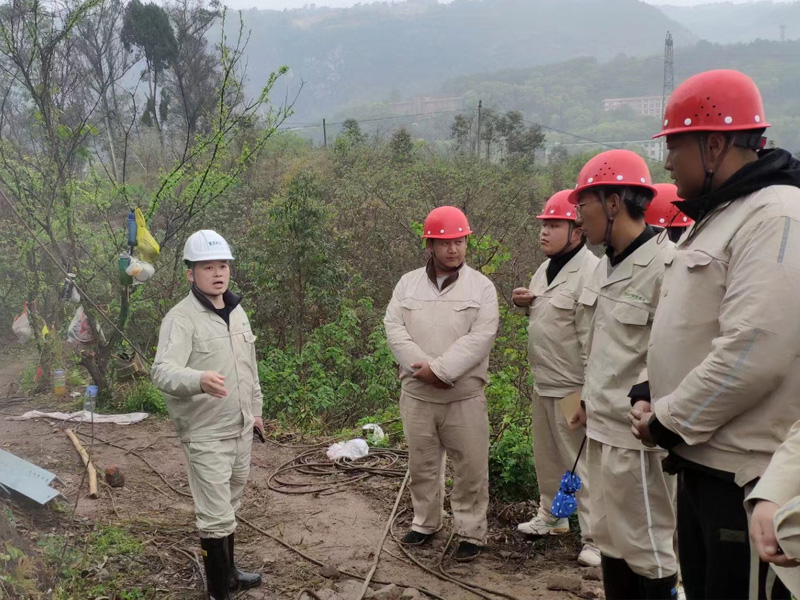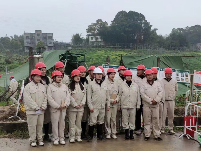 項目現(xiàn)場,項目經(jīng)理張小偉、李振、施工班長肖道軍等分別對鐵塔基礎開挖,安全措施、安全工具器、登高工具器、消防設施、視頻監(jiān)控等內容進行了講解,實習生們積極提問認真學習。期間,重慶永能實業(yè)(集團)有限公司董事彭明輝蒞臨現(xiàn)場指導工作。