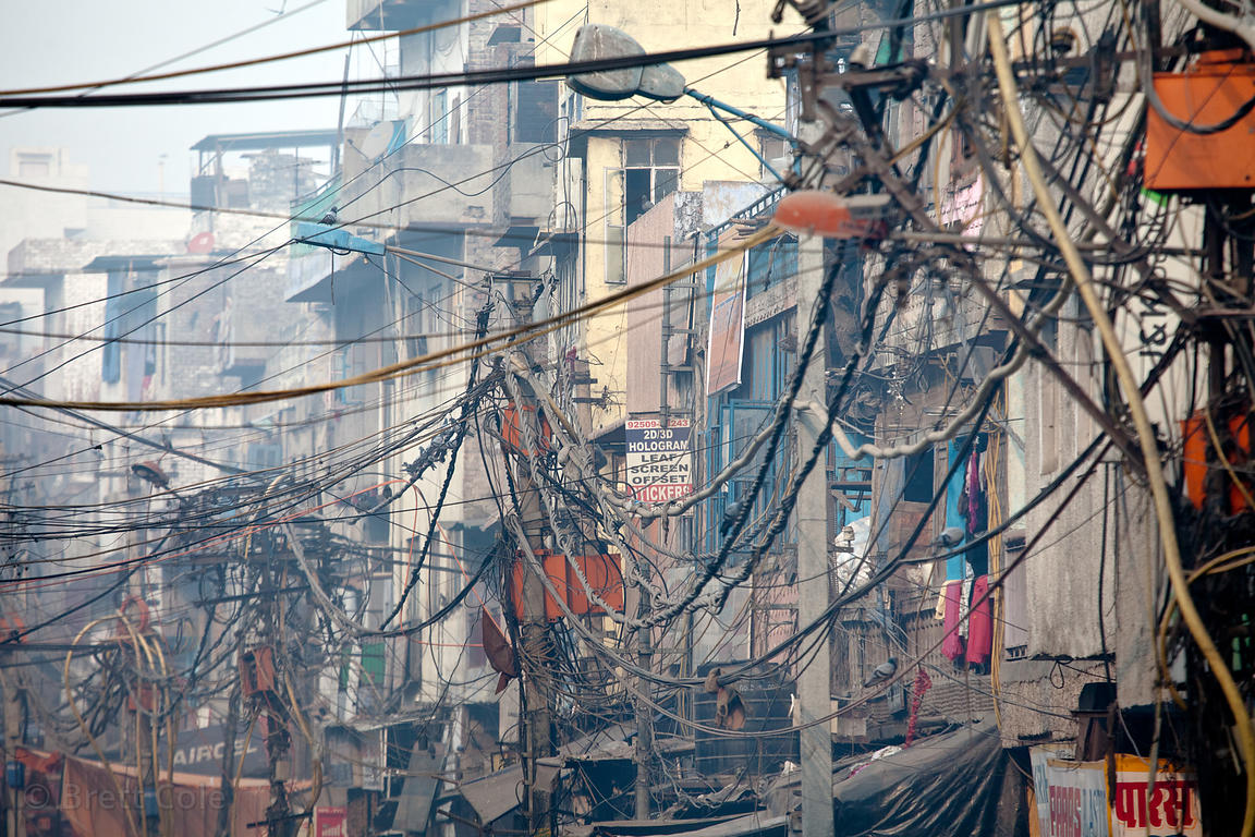 An inpenetrable thicket of utility wires in the Chandi Chowk area of Old Delhi, India