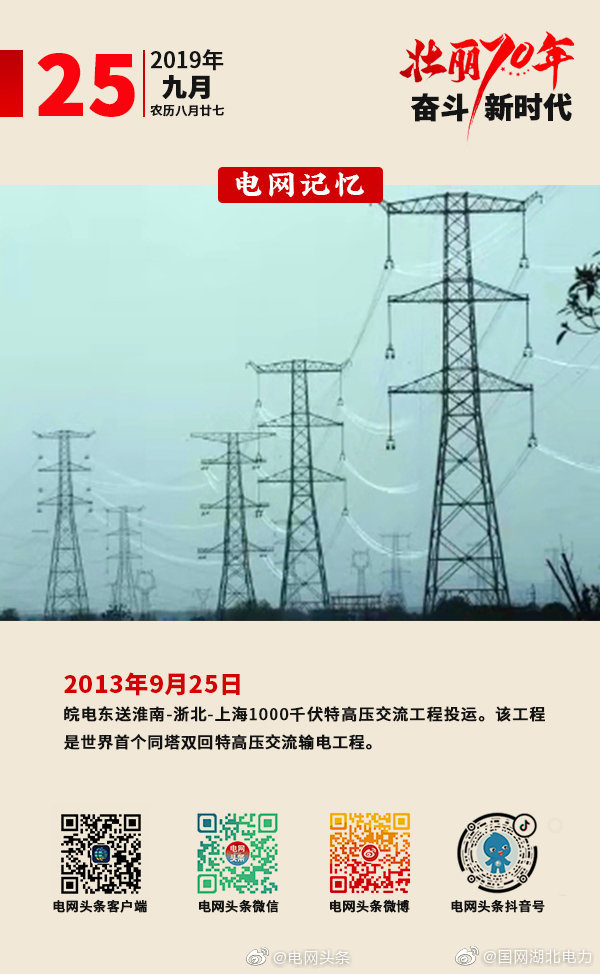 2013年9月25日,皖電東送淮南—浙北—上海1000千伏特高壓交流工程投運(yùn)。該工程是世界首個(gè)同塔雙回特高壓交流輸電工程。