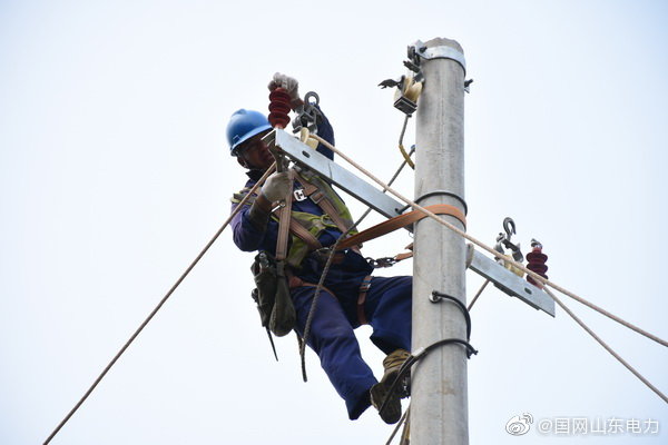 【架設(shè)新線路 打通致富路】10月7日,在孝直鎮(zhèn)前洼村某牧業(yè)新建線路工程現(xiàn)場(chǎng),國(guó)網(wǎng)平陰縣供電公司組織施工人員忙著安裝橫擔(dān)、架設(shè)導(dǎo)線,截止目前,該工程共立桿97基,架設(shè)線路6.55千米,敷設(shè)電纜2.6千米。 ????