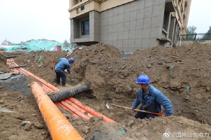 【社區(qū)建設(shè)發(fā)展旺,電力先行來(lái)幫忙】10月10日,武城縣東部一建設(shè)中的社區(qū)工地內(nèi),國(guó)網(wǎng)武城縣供電公司施工人員冒著小雨,為該社區(qū)敷設(shè)電纜保護(hù)管道,并制作電纜接頭,確保11月底前該社區(qū)全部電力設(shè)施安裝就位。 ????