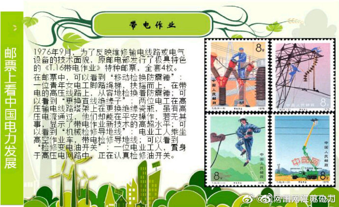 郵票,作為一種郵資憑證,其精美的圖案,還時常體現(xiàn)一個國家或地區(qū)的文化、歷史、經濟、風土人情、自然風貌等。在郵票上我們還能看到新中國的火電、風電、核電以及輸配電等電力工業(yè)也發(fā)展迅速,反映的是我國經濟發(fā)展的蒸蒸日上以及人民生活水平的不斷提高。