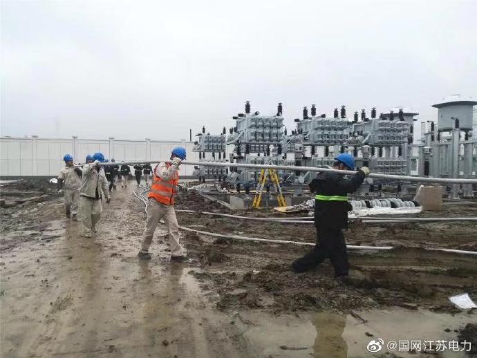 1月10日,常州地區(qū)依舊陰雨連綿,江蘇省送變電有限公司的施工人員依舊在500千伏中吳變的施工現(xiàn)場冒雨戰(zhàn)斗。中吳變的主變構(gòu)架至220千伏構(gòu)架的高跨線有70余米,為將6根高跨線從壓接區(qū)搬運(yùn)至安裝位置大家齊心協(xié)力、步調(diào)一致共同完成這項工作,為下一步軟母線安裝做好準(zhǔn)備。雖然寒風(fēng)夾雜著雨水,顯得更加寒冷,大家的熱情卻絲毫不減,用實際行動保證工程的按期投運(yùn)。