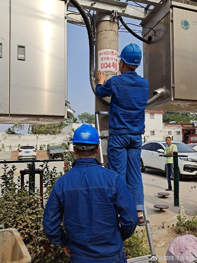 電力線路桿號牌作用大,6月23日,國網(wǎng)邯鄲市新區(qū)供電公司工作人員對線路桿塔進(jìn)行逐基檢查,給缺牌線路桿號帶上“身份證”,來提醒過往行人注意保護(hù)電力設(shè)施。這是該公司南呂固供電所正在對10千伏038賈村線西街宗3分支線004號桿進(jìn)行補貼線路桿號牌