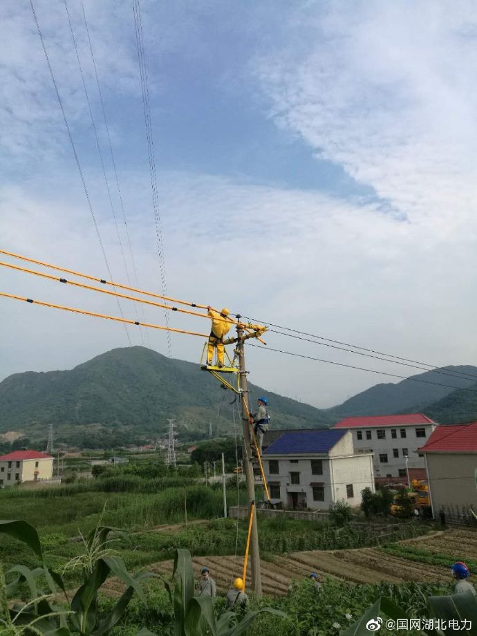 6月27日,為配合新建輸電線路導(dǎo)地線展放施工,國網(wǎng)黃石高新區(qū)供電中心帶電班“小黃人”在桿上為輸電線路下方運行中的10kV藍(lán)天線大垴山支線“添衣”,進(jìn)行絕緣遮蔽,避免施工期間誤碰帶電線路,全力保障用戶安全可靠供電。