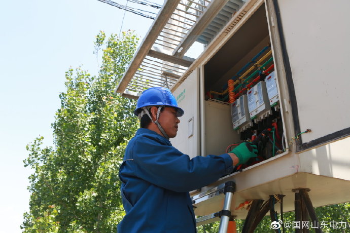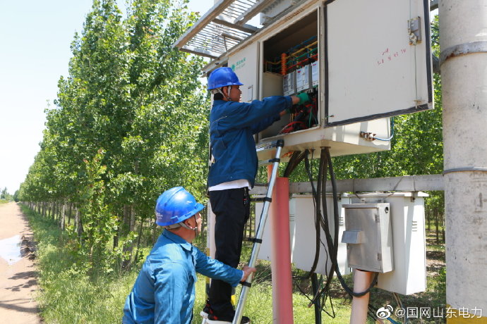 6月30日,國網(wǎng)高密市供電公司員工在井溝鎮(zhèn)小李村3號臺區(qū),細(xì)致排查臺區(qū)的機井變壓器、漏電保護(hù)器、配電設(shè)備,及時消除農(nóng)村臺區(qū)低壓出線空載、超負(fù)荷運行等缺陷,為當(dāng)?shù)鼐用裣姆N灌溉用電提供可靠保障。 ????