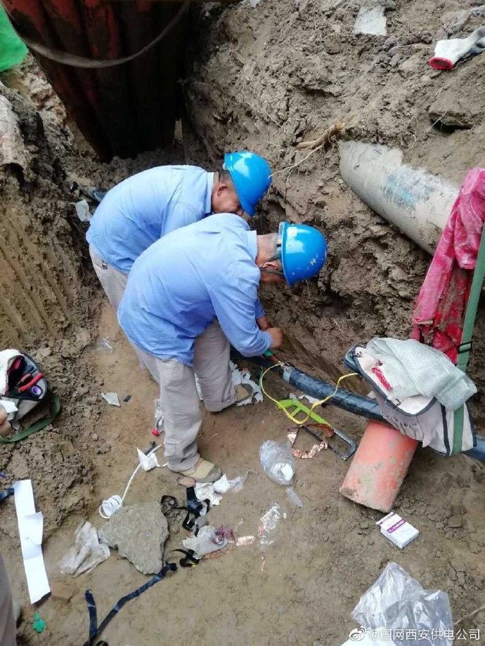 8月15日,國網(wǎng)西安市鄠邑區(qū)供電公司工程施工人員從轄區(qū)龐光線完成施工任務(wù)返回途中接到搶修任務(wù),將疲憊的身體迅速調(diào)整回好狀態(tài),他們又一次投身故障現(xiàn)場(chǎng)場(chǎng)奮力搶修。因外力破壞電纜導(dǎo)致國防學(xué)院停電,施工人員經(jīng)過現(xiàn)場(chǎng)勘察確定故障點(diǎn)后,迅速開挖土方,實(shí)施搶修作業(yè),為了迅速恢復(fù)供電,他們爭(zhēng)分奪秒,盡量縮短停電時(shí)長(zhǎng),于夜晚10:30恢復(fù)供電。
