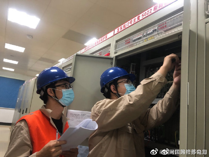 9月3日,在500千伏龍王山變電站,國網(wǎng)江蘇檢修公司變電中心二次一班人員進(jìn)行龍東5261線路保護(hù)校驗(yàn)工作。檢修人員對(duì)屏內(nèi)端子排進(jìn)行螺絲緊。