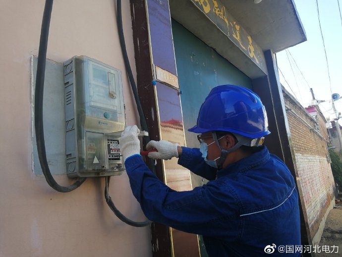 國(guó)網(wǎng)任丘市供電公司員工在出岸鎮(zhèn)對(duì)居民電表進(jìn)行巡視檢查