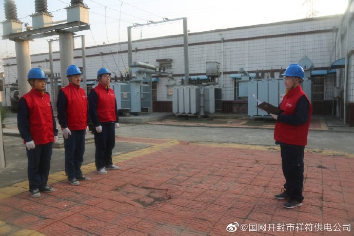 11月10日,在開封市祥符供電公司35千伏獨樂崗變電站秋檢現(xiàn)場,變電檢修黨員服務(wù)隊隊長姬亞楠在召開班前會。