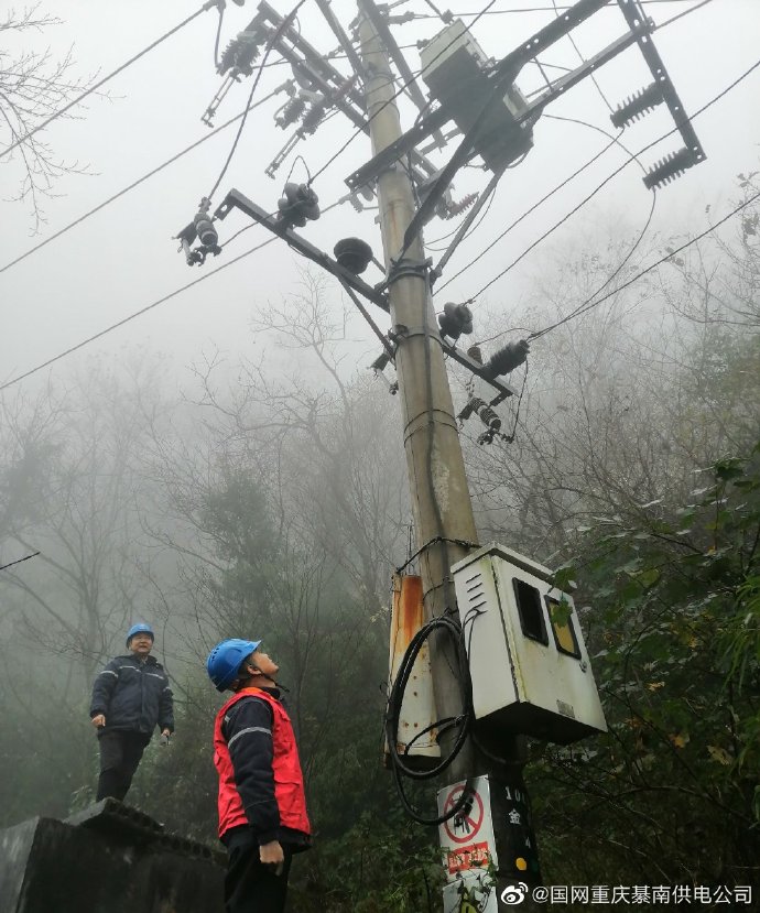 【備戰(zhàn)迎峰度冬】11月24日,國網(wǎng)重慶綦南供電公司隆化供電所工作人員在南川區(qū)三泉鎮(zhèn)對(duì)10千伏鳳河線鳳景支線開展特巡,并對(duì)金佛山景區(qū)線路、控制柜、柴油發(fā)電機(jī)等設(shè)備進(jìn)行用電檢查,為金佛山冰雪節(jié)順利開幕保駕護(hù)航。 ????