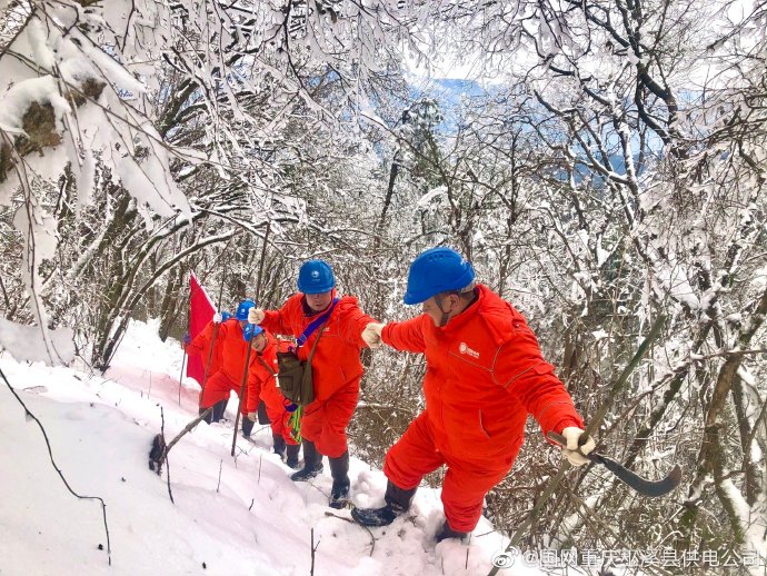12月17日,國網(wǎng)重慶巫溪供電公司輸電運維人員雪后特巡和檢查110千伏河白東、西兩條線路。