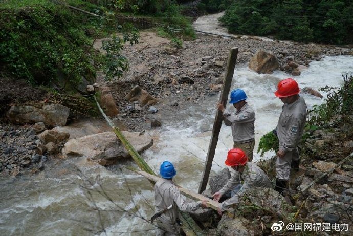 6月22日,因受強降雨導(dǎo)致福建省邵武市張厝鄉(xiāng)祝嶺村路段爆發(fā)山洪,致使該路段道路及供電被中斷。接到消息后邵武市供電公司的工作人員第一時間組織4部車、30余人的搶修隊伍前往受災(zāi)路段,由于滑坡道路阻斷,搶修人員只能徒步前往搶修地點,為了方便人員和設(shè)備通過,他們還架起一座簡易的橋。面對暴雨的突擊,供電蜀黍早已提前部署好,風雨再大,有他們在前方護航。