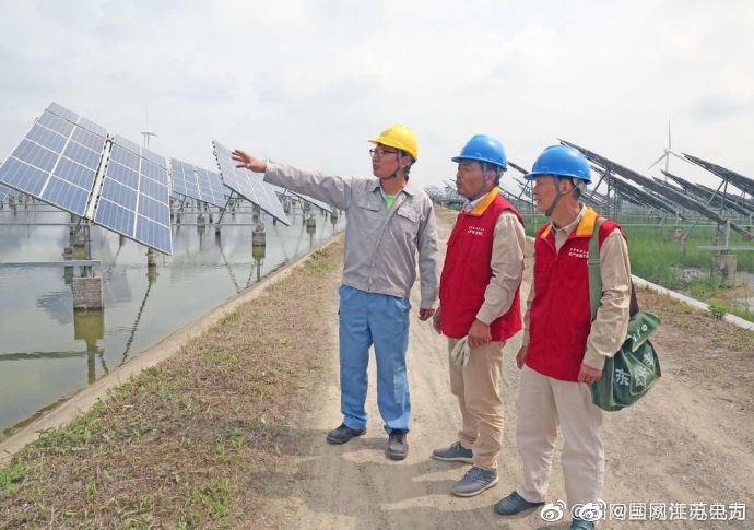 7月3日,國網(wǎng)東臺市供電公司弶港供電所“金海星”共產(chǎn)黨員服務隊員到東臺沿海經(jīng)濟區(qū)中節(jié)能“風光漁”光伏電站,與電站維護人員一起巡檢光伏多晶硅板及匯流控制柜,保障夏季安全發(fā)電。 ????