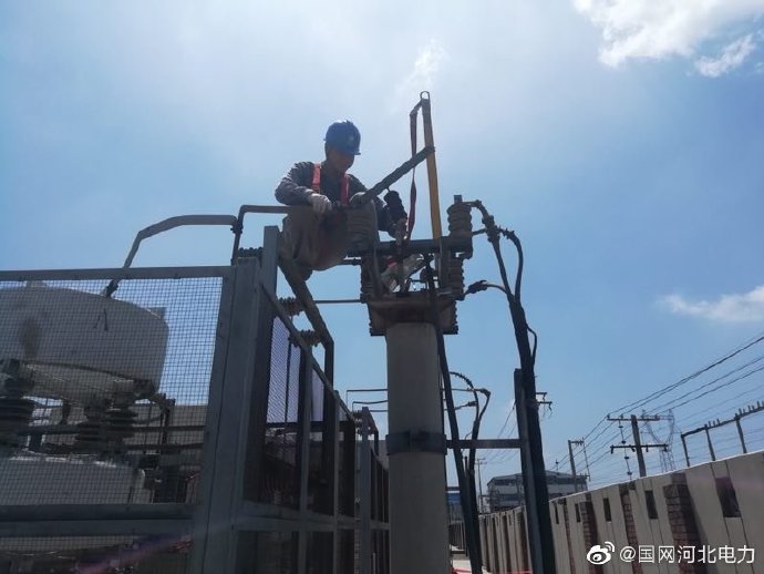迎夏峰,斗酷暑,保供電,站正酣。最熱的天氣,最熱的時間,一場供電保衛(wèi)戰(zhàn)已悄然打響。電力小哥在烈日下工作,保護電網(wǎng)安全可靠運行,全力迎接高溫“烤”驗。圖為7月25日,國網(wǎng)滄州供電公司電力小哥對110千伏石門橋站進行刀閘檢查維護工作。