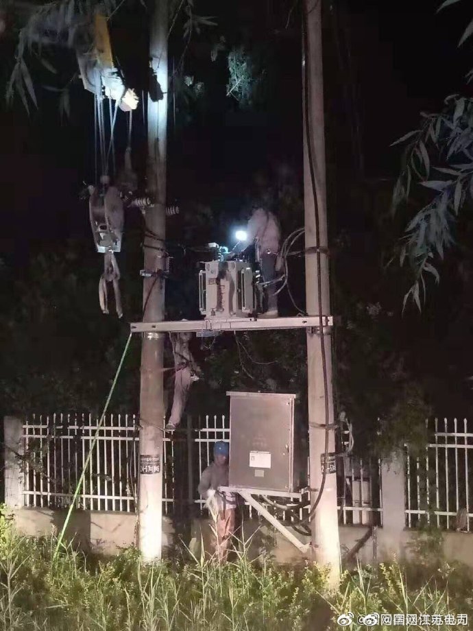 【雷擊毀配變, 夜半搶修忙】7月28日18:20,沭陽縣遭遇暴風(fēng)驟雨,造成塘溝鎮(zhèn)胡塘橋村西姜組1臺200千伏安的配電變壓器被雷擊燒毀,導(dǎo)致110居民失電,國網(wǎng)宿遷沭陽縣供電公司立即組織人員冒著36℃的高溫進(jìn)行搶修,更換配電變壓器,并于23:10更換結(jié)束送電。 ????