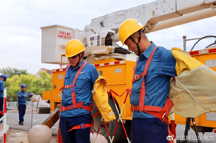 【帶電作業(yè)助力臺(tái)區(qū)建設(shè)】8月1日,國(guó)網(wǎng)即墨市供電公司帶電作業(yè)人員,奮戰(zhàn)在38度高溫中,對(duì)10千伏石棚乙線開展斷、接支接線路引線工作,配合施工人員對(duì)大韓村2臺(tái)區(qū)新上400千伏變壓器工作,為當(dāng)?shù)乜蛻籼峁└觾?yōu)質(zhì)供電。