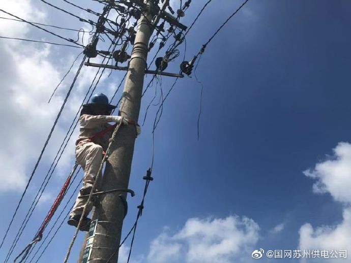 8月6日上午,國網(wǎng)蘇州市吳江區(qū)供電公司松陵供電所搶修人員在新營1號(hào)變拆除存在安全隱患的廢舊線路。拆除廢舊線路工作可消除老舊跨越線路的安全隱患,避免線路退役后,長期無人運(yùn)行維護(hù)引發(fā)的倒桿、電線事故,有效保障了其它電力線路的安全運(yùn)行和行人人身安全。