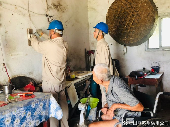 8月7日,國(guó)網(wǎng)常熟市供電公司尚湖供電所臺(tái)區(qū)經(jīng)理在高溫天氣來(lái)到尚湖鎮(zhèn)常興金墅村為麻風(fēng)病老人王全根家里維修電燈開(kāi)關(guān)和電風(fēng)扇插座,為夏日老人送上一份清涼。