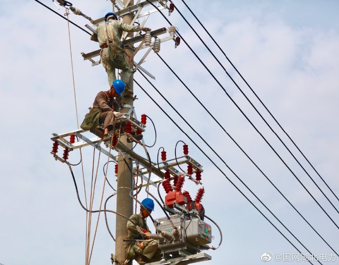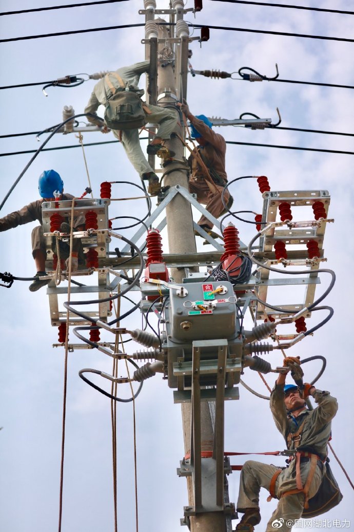 【戰(zhàn)高溫裝開關(guān) 保供電送清涼】8月15日,國(guó)網(wǎng)鄂州供電公司員工在花湖開發(fā)區(qū)10千伏胄山線26號(hào)桿安裝配網(wǎng)自動(dòng)化開關(guān),實(shí)現(xiàn)實(shí)時(shí)檢測(cè)線路電氣參數(shù),加快線路故障隔離速度,減小故障停電范圍,保障市民可靠用電、清涼度夏。