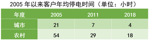 近10余年來,城市、農(nóng)村供電可靠率分別從2005年的99.755%、99.382%提高到99.955%、99.795%,客戶年均停電時間分別從21小時、54小時下降到4小時、18小時。尤其是農(nóng)村電網(wǎng)實現(xiàn)了跨越發(fā)展,為農(nóng)村經(jīng)濟(jì)社會發(fā)展、農(nóng)民脫貧致富注入了源動力。