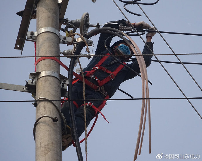 【加快農網改造 助力脫貧攻堅】5月19日,國網東阿縣供電公司施工人員對牛屯村線路進行農網施工改造,改造低壓線路1000米,架設絕緣導線1500米,立桿3基,提升電網供電穩(wěn)定性,為居民脫貧提供電力保障。 ????