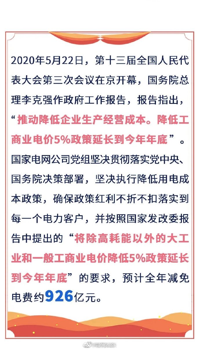 五是電力營(yíng)商環(huán)境持續(xù)優(yōu)化。實(shí)施優(yōu)化營(yíng)商環(huán)境兩年行動(dòng)計(jì)劃,世界銀行“獲得電力”指標(biāo)排名從去年的第14位上升至第12位,為我國(guó)營(yíng)商環(huán)境總體排名從46位提高到31位作出貢獻(xiàn)。堅(jiān)決落實(shí)國(guó)家降價(jià)降費(fèi)部署,全面完成一般工商業(yè)平均電價(jià)再降低10%任務(wù),降低用戶(hù)成本負(fù)擔(dān)641億元。全年有力保障了社會(huì)用電需求,實(shí)現(xiàn)迎峰度夏、度冬期間電力供需平穩(wěn)有序。