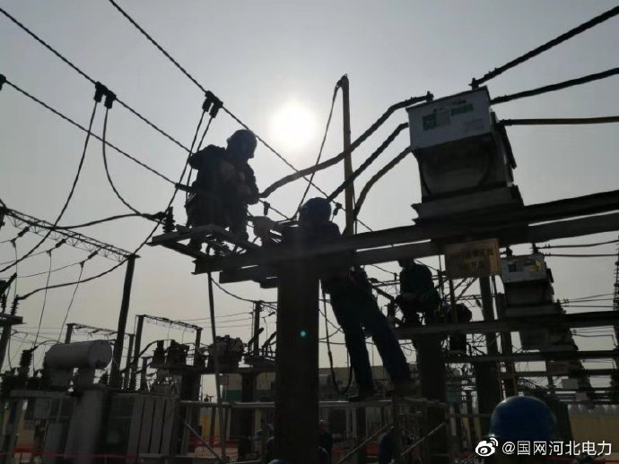 電桿電線電站,檢修試驗(yàn)運(yùn)維,夕陽西下,電力哥還在忙。10月23日,國網(wǎng)行唐縣供電公司職工在35千伏貝村變電站開展秋檢預(yù)試,消除設(shè)備安全隱患,保障冬季用電高峰期安全穩(wěn)定運(yùn)行。