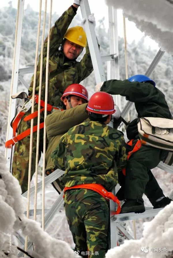 ▼2008年,國網(wǎng)江西電力青年突擊隊搶修因冰災受損的鐵塔。