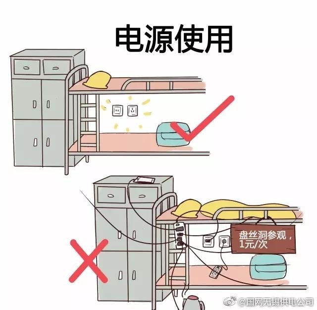 【宿舍床鋪成了“盤絲洞”,后果會……】違章亂拉亂接電線,把宿舍床鋪周圍布置成“盤絲洞”,這樣容易損傷線路絕緣層,引起線路短路和觸電事故。
