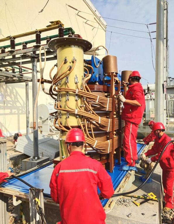 10、110kV變壓器大修吊芯作業(yè),大罩已經(jīng)取掉,工人們穿好專用鞋套,工作服,手套,進(jìn)行絕緣屏障,變壓器高低繞組,鐵芯等的檢查,緊固螺絲、更換密封膠條、膠墊等