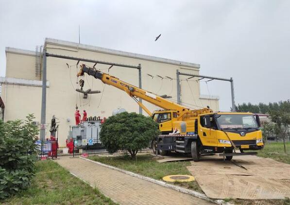 5、110kV變壓器大修吊芯作業(yè),采用35噸吊車,吊裝重量不重,為什么用35噸位的呢,因?yàn)楝F(xiàn)場(chǎng)條件有架空導(dǎo)線阻擋,吊裝角度比較小
