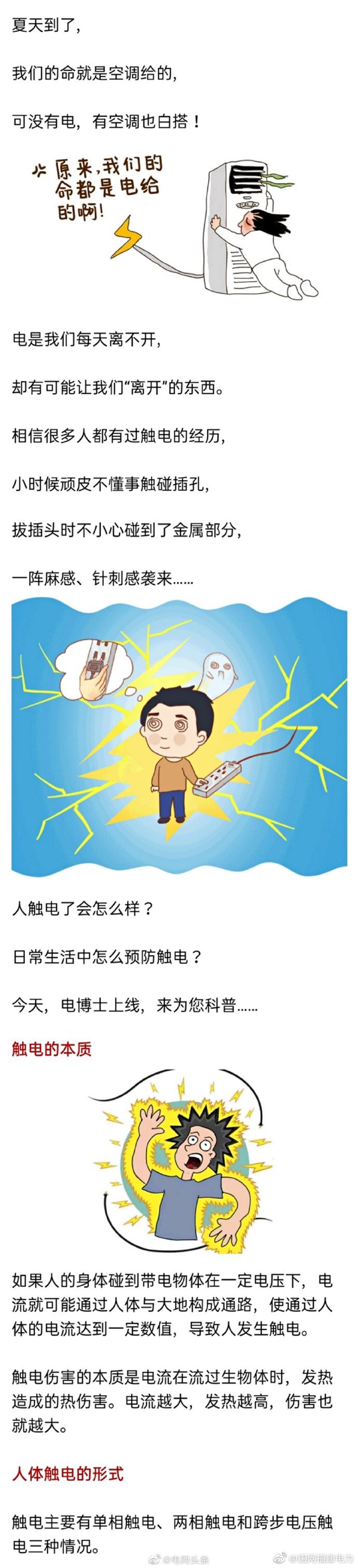 夏天就要到了,命又成了空調(diào)給的!家庭的用電量持續(xù)增加,用電安全問題也絕不能忽視。人觸電了會怎么樣?日常生活中怎么預(yù)防觸電?來為您科普下~ ????