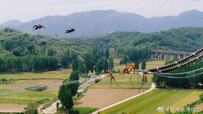 6月9日,天津送變電員工在陜北~湖北±800千伏特高壓直流輸電線路工程(豫3標(biāo)段)進(jìn)行導(dǎo)線臨錨作業(yè),為后續(xù)斷線、緊線做施工準(zhǔn)備。