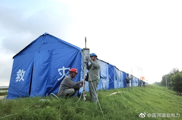 國網(wǎng)武漢市蔡甸區(qū)供電公司在接到區(qū)防汛抗洪指揮部指令后,迅速集結(jié)200余名施工人員,出動40余臺施工車輛,連夜為400頂救災(zāi)帳篷接通臨時電源,確保消泗鄉(xiāng)九溝村、挖溝村汛情避險轉(zhuǎn)移的近3000名群眾臨時用電!