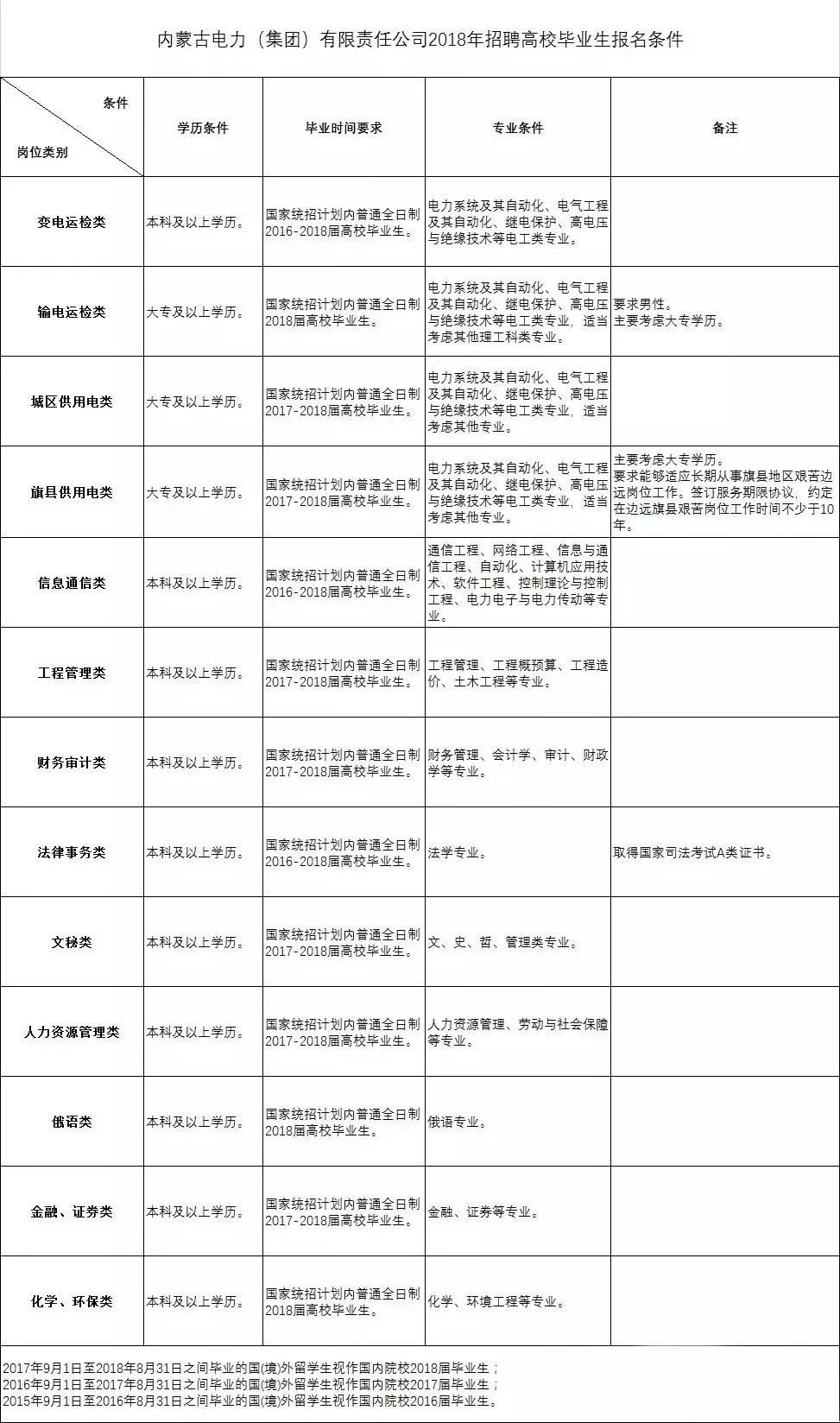 我們可以看到,蒙西電網(wǎng)是分崗位提招聘要求的,不同崗位對(duì)應(yīng)的學(xué)歷條件以及畢業(yè)年限要求不完全一致。
