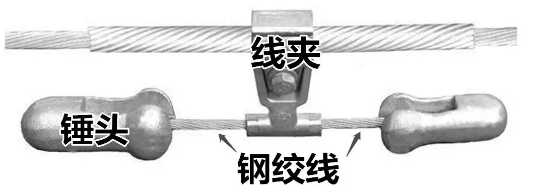 防振錘由線夾、鋼絞線和錘頭三部分組成,通過線夾固定在電線上。輸電線路發(fā)生微風(fēng)振動(dòng)時(shí)產(chǎn)生的力,會(huì)使防振錘隨之振動(dòng)。