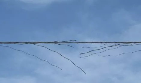 美國(guó)南加州一條220千伏線路,導(dǎo)線采用鋼芯鋁絞線,地線采用鋼絞線,在運(yùn)行中導(dǎo)線和地線都發(fā)生多處斷股,其中一處54股鋁線斷了28股。