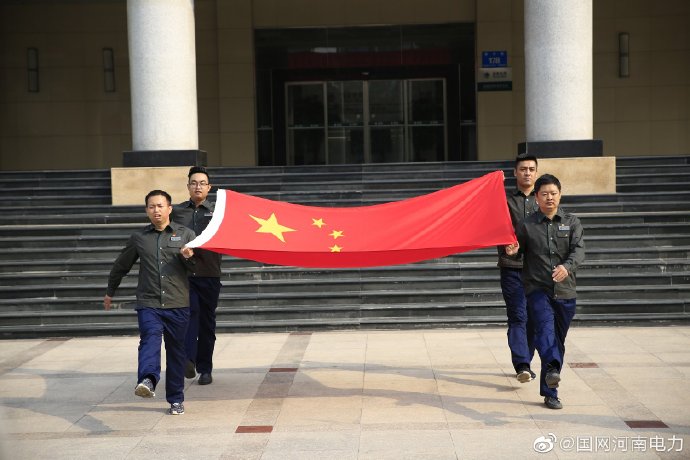 【“壯麗70年·奮斗新時代”升國旗迎國慶】9月27日,在新中國成立70周年即將到來之際,國網(wǎng)新鄭市供電公司百余名干部職工在公司樓前開展“壯麗70年·奮斗新時代”升國旗迎國慶活動。在嘹亮的國歌聲中,鮮艷的五星紅旗冉冉升起,大家懷著崇敬和激動的心情面向國旗行注目禮。最后,在一首《我和我的祖國》的合唱中,祝愿祖國更加繁榮昌盛、和諧富強。
