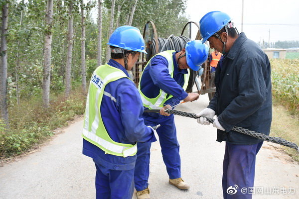 【架設(shè)新線路 打通致富路】10月7日,在孝直鎮(zhèn)前洼村某牧業(yè)新建線路工程現(xiàn)場(chǎng),國(guó)網(wǎng)平陰縣供電公司組織施工人員忙著安裝橫擔(dān)、架設(shè)導(dǎo)線,截止目前,該工程共立桿97基,架設(shè)線路6.55千米,敷設(shè)電纜2.6千米。 ????