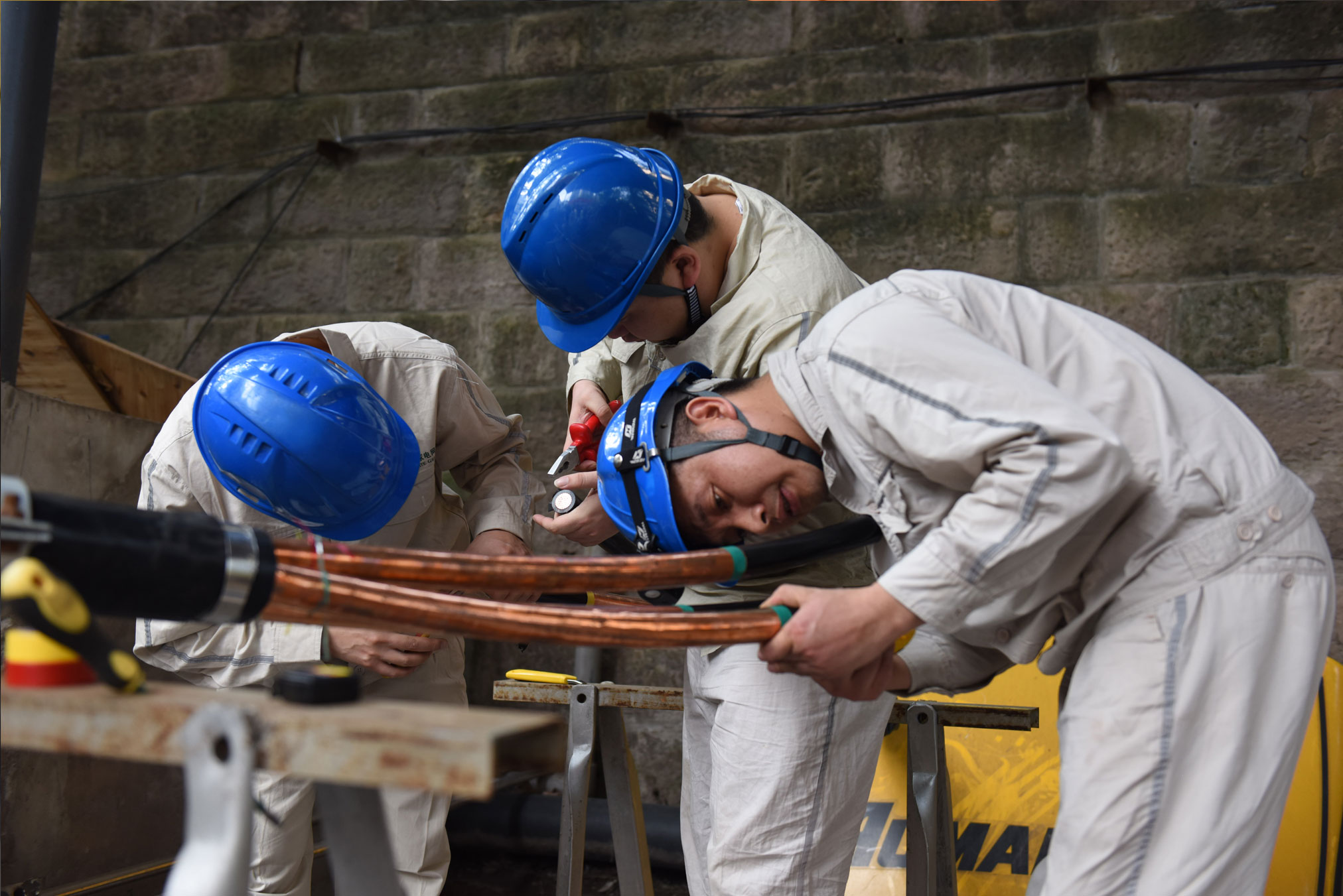 8日,江北公司在多功能廳組織了10千伏電纜附件制作人員理論考試。9日-12日,該公司舉行了為期4天的實作考試,各外施工單位、集體企業(yè)以及運維班組的電纜作業(yè)人員共計79個隊伍270余人參與考評,要求在2小時內(nèi)完成電纜中間接頭的制作。從切割電纜、剝除外護層,到安裝中間接頭、恢復(fù)主絕緣,考生們兩人一組,每一步驟都聚精會神,力求精益求精。