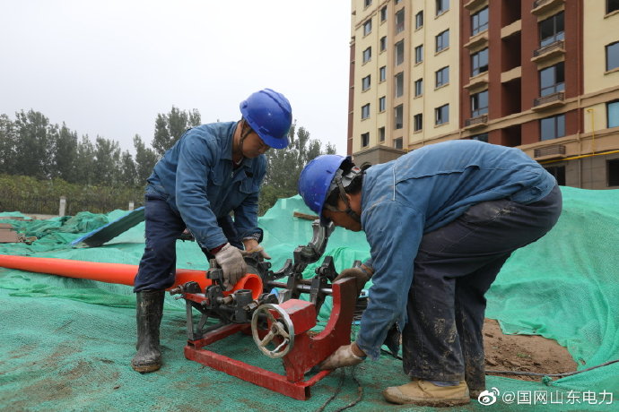 【社區(qū)建設(shè)發(fā)展旺,電力先行來(lái)幫忙】10月10日,武城縣東部一建設(shè)中的社區(qū)工地內(nèi),國(guó)網(wǎng)武城縣供電公司施工人員冒著小雨,為該社區(qū)敷設(shè)電纜保護(hù)管道,并制作電纜接頭,確保11月底前該社區(qū)全部電力設(shè)施安裝就位。 ????