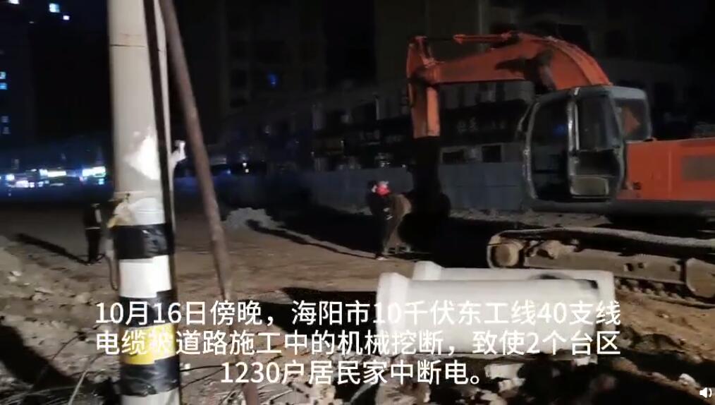 10月16日傍晚,海陽市10千伏東工線40支線電纜被道路施工機(jī)械挖斷,導(dǎo)致兩個臺區(qū)居民電力中斷。國網(wǎng)海陽供電公司員工迅速趕赴現(xiàn)場恢復(fù)主線路供電后,全力投入搶修工作。經(jīng)過一個半小時的緊張施工,線路搶修完畢,于18時20分恢復(fù)電力供應(yīng)。