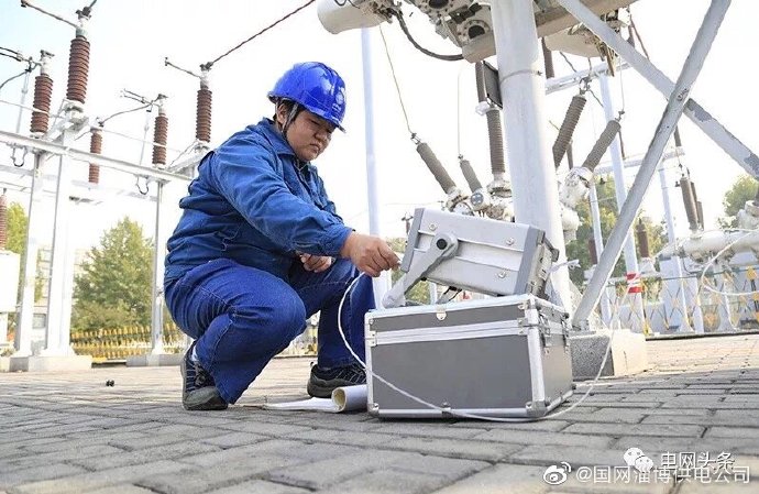10月21日,山東淄博供電公司員工孫健在110千伏張店變電站對110千伏付郊線接插式開關設備開展微水測試。