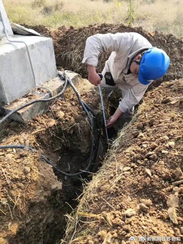 【接地改造防雷擊,保線路安全運行】10月21日,國網(wǎng)江蘇檢修公司輸電中心二班對所轄線路內(nèi)接地電阻測量不合格的桿塔基礎(chǔ)采用新型材料石墨接地進行改造,增強輸電線路應對強雷電惡劣天氣的防雷能力,減少跳閘故障,為線路安全穩(wěn)定運行奠定堅實的基礎(chǔ)。 ????