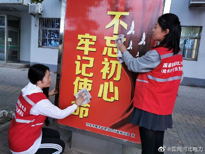文明在哪里呀,文明在哪里?文明就在我們的點(diǎn)滴行動里。10月23日,國網(wǎng)泊頭市供電公司組織志愿者身體力行創(chuàng)文明城市,不怕臟不怕累,認(rèn)真擦拭路牌,張貼公益廣告,用實(shí)際行動踐行生態(tài)文明建設(shè),彰顯電力之光。
